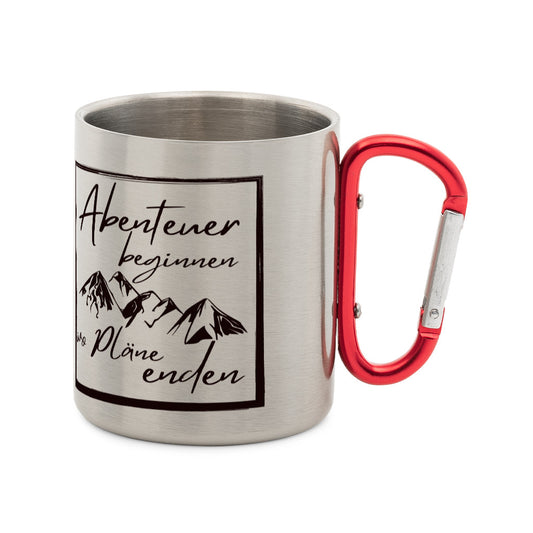 Abenteuer - Edelstahl-Tasse mit Karabiner